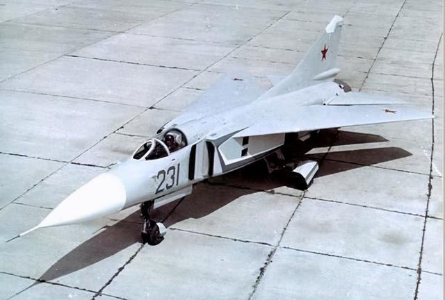 1960年开始研制,1967首飞,1970服役。米格-23战斗机采用了变后掠翼设计,解决了高速和低速兼容的问题,不过后掠角只能在16、45、72度三个,做不到无级调节。