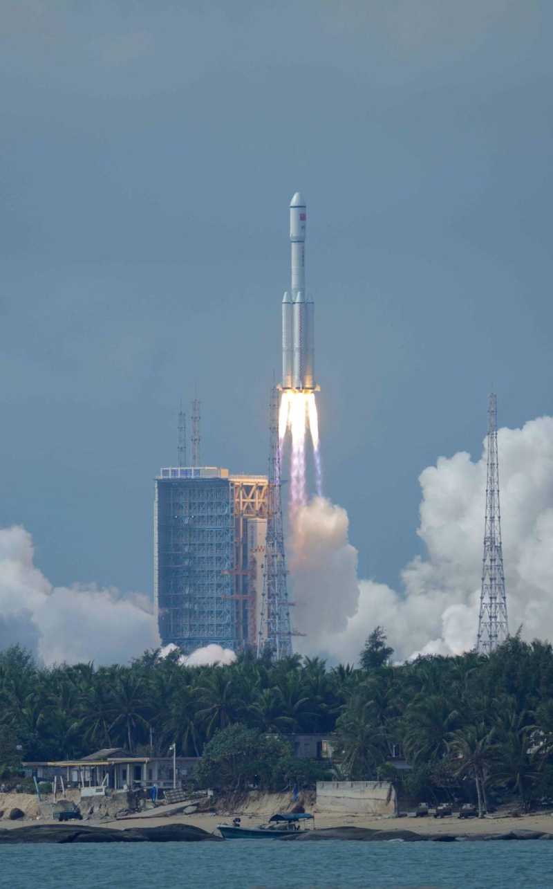 11月12日,搭载天舟五号货运飞船的长征七号遥六运载火箭发射升空。图源:云上天镜