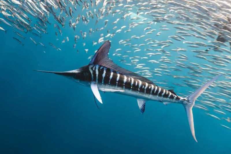 黑枪鱼被认为是海洋中最快的动物。这种鱼体长 15 英尺,比旗鱼略大,生活在太平洋和印度洋较温暖的地区。它重 1650 磅,这使得它更重。