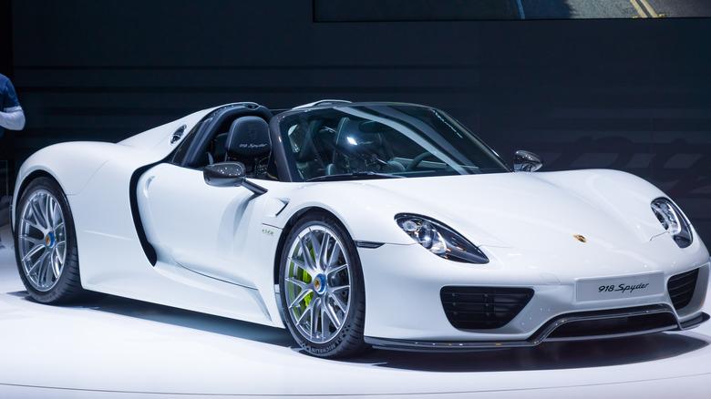 双门保时捷918 Spyders拥有4.6升V8燃气发动机,可自行产生608马力和398磅 - 英尺的扭矩。话虽如此,918 Spyder 远未完成。该发动机由6.8千瓦时锂离子电池提供燃料,前部产生129马力,后部产生156马力。这个小型动力室的气缸中存储了887马力和944 lb-ft的扭矩。在2.5秒内,您可以从零到每小时60英里。为了强调汽车对驾驶员的注意力,918 Spyder的内饰采用碳纤维座椅,带有柔软的真皮覆盖物,驾驶选择旋钮位于方向盘上。