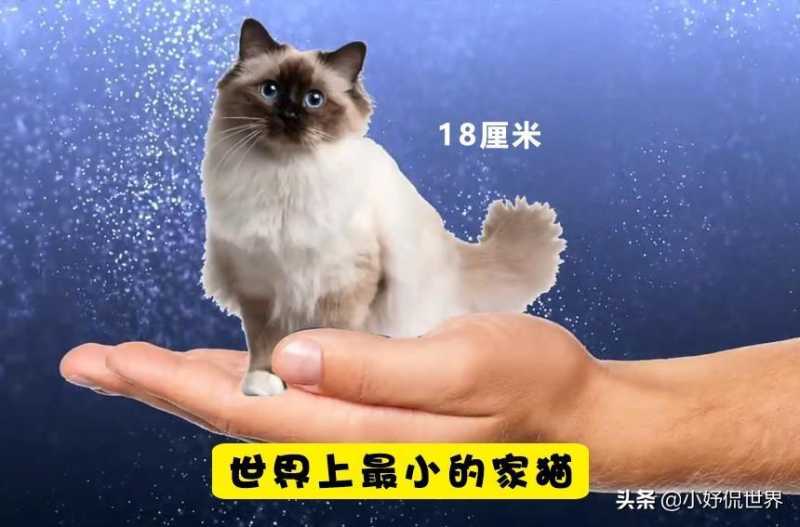 这个世界上最小的家猫是一只名为Tinker Toy的喜马拉雅波斯猫,它仅有18厘米长。这只成年的小猫咪可以被轻松的放在一个人的手掌当中,它也是吉尼斯世界纪录的保持者。但整体而言,世界上最小的猫咪应当是新加坡猫。因早期这种猫在原产地新加坡并不受欢迎,常被迫寄居在下水道中,因此也得名下水道猫。也由于生活环境恶劣的关系,而导致其体形娇小。但是,如今它已经成为了新加坡的国猫。