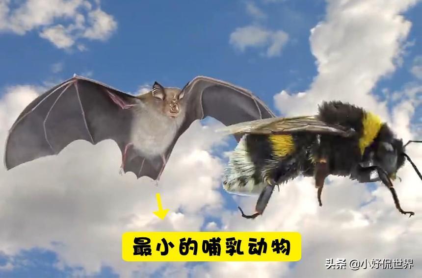 世界上体型最小的哺乳动物是大黄蜂蝙蝠,它仅有2.5厘米。正如它的名字体现的那样,它的大小也就仅有一只大黄蜂那么大。它们主要分布于泰国西部及缅甸东南部,在沿河附近的石灰岩洞中生活。