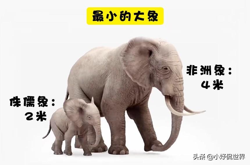 世界上最小的象是婆罗洲侏儒象,它的身高有2米。如果站在我们人类的角度来看,2米的身高听起来一点都不矮,但要知道,非洲象可是可以长到4米高的,这可是相差一倍呢。另一方面,侏儒象的尾巴可以长很长,长得拖在地板上。