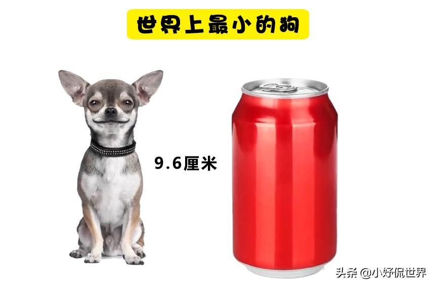 根据吉尼斯世界纪录的记载,世界上最小的狗狗是一只来自于波多黎各,名叫米莉的吉娃娃。它的身高甚至都不到9.6厘米,和一瓶汽水瓶的高度差不多。另一方面,吉娃娃这个品种,也是所有狗狗当中最小的品种。