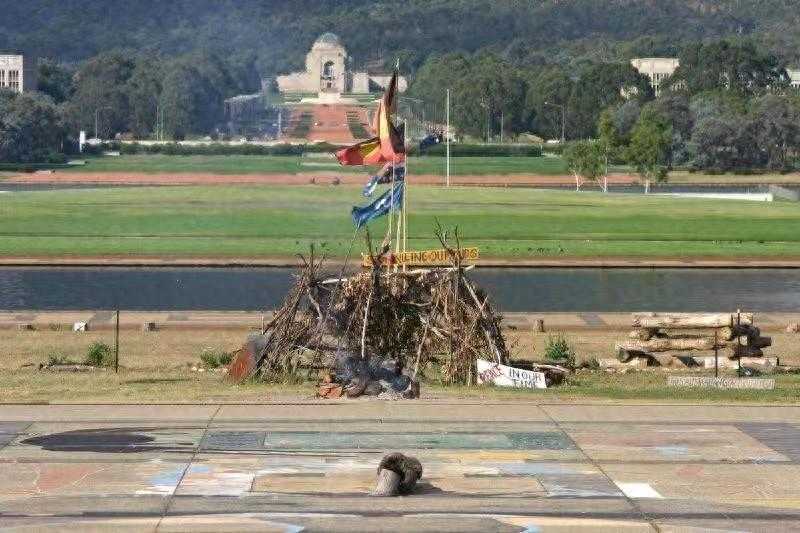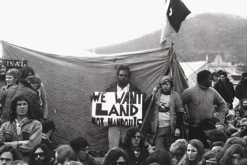 这个位于澳大利亚旧国会大厦前的帐篷大使馆。是澳大利亚原住民族在 1972 年做出的创举,目的是为了向政府要求原住民族应有的土地权。为什么他们要以大使馆的名义来搭这个棚子呢?这是因为发起人认为18世纪英国人入侵澳大利亚以后,原住民族在并未有任何合法合规的程序之下,他们的土地就被判定为无主地而直接为白人所侵占。于是他们决定以国家对国家的概念来控诉政府不愿正视问题。