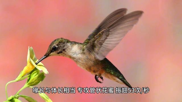 ·第十名:红喉蜂鸟。体长9cm一星,分布北美洲东部,迁徙跨越墨西哥湾连续飞行18小时不停歇,喙长与体长相当,专攻管状花蜜,振翅53次/秒。