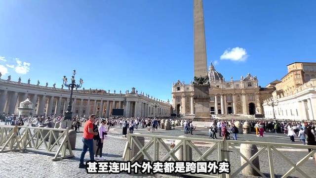 在这个栏杆的里面就是梵蒂冈,在这个栏杆的外面就是意大利。在这里没有机场,也没有火车站。上个学要出国,看个病要出国,甚至连叫个外卖都是跨国外卖。他们整个国家的人口就只有800人,连他们的警察都是从瑞士雇来的。前面的小商贩就相当于是这个国家里的百货公司了。