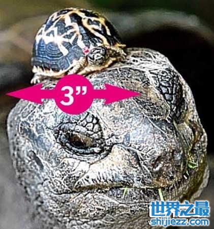 沃尔特是世界上个头最小的龟,经常把哈诺维动物园35岁的巨龟奥托的脑袋当成自己的安乐窝。体型最大的龟身长可达43英寸(约1米),最小的只有3英寸(约7.6厘米)。