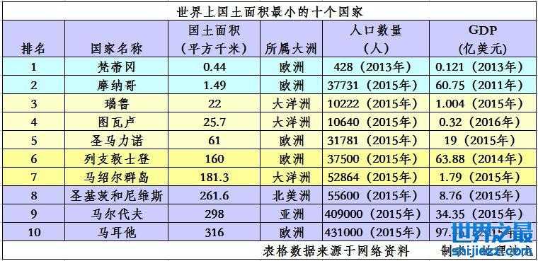 世界上这么多国家面积大小差异极其悬殊,面积大的国家面积大到比一个大洲的面积还大,面积小的国家真正是弹丸之地。之前我们介绍了当今世界国土面积最大的十个国家,今天开始我们来看看世界上国土面积最小的十个国家。