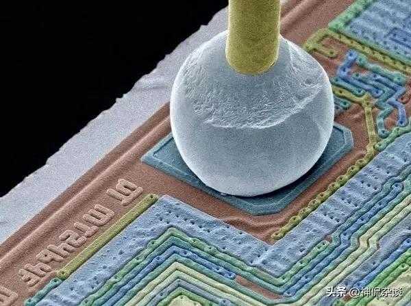 带芯片连接器的硅微芯片,放大倍率为1000倍