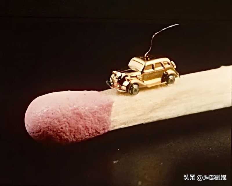世界上最小的机动车(纳米尺寸的丰田 1936 aa)在火柴上