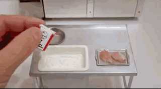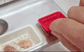 当你点炸鸡的时候,用小小的鸡胸肉裹上炸鸡粉: