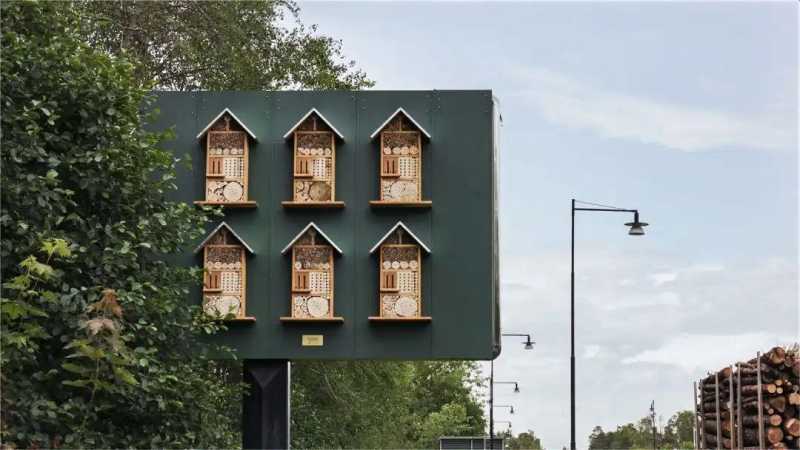 此外,麦当劳还在路边的木质广告牌上钻孔,为蜜蜂打造了一个安乐的巢穴。