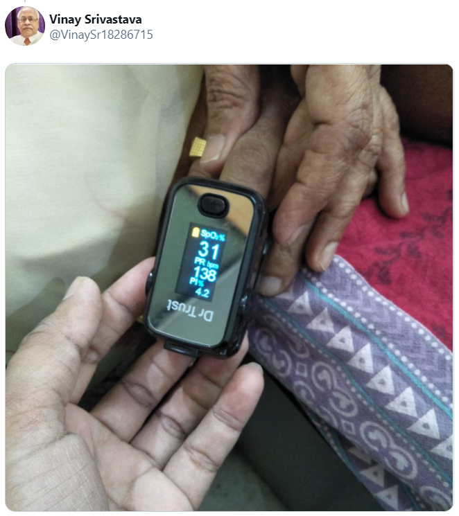 印度北部的另一名记者自己确诊后,在推特上直播病情。他65岁了,氧气已经减少到了52%。医院和研究院没人接他的求助电话。网友们很热心,一些人告诉他要加油,一些人告诉他要对政府有信心,最后连这个邦的部长发言人都回复了帖子,说会帮他找医院。