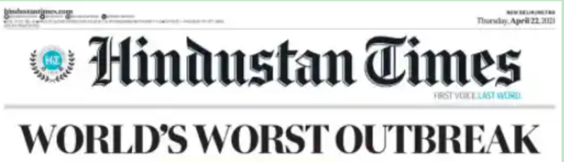 同一天,印度单日新冠新增病例直冲23.4万例,死亡1341人,突破本国历史记录。从那天开始,数字就一直在以恐怖的速度爬升。