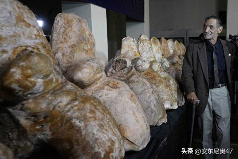 「巨像秘鲁鲸」(Perucetus colossus)的脊椎骨,与人相比显示出相当巨大的规模