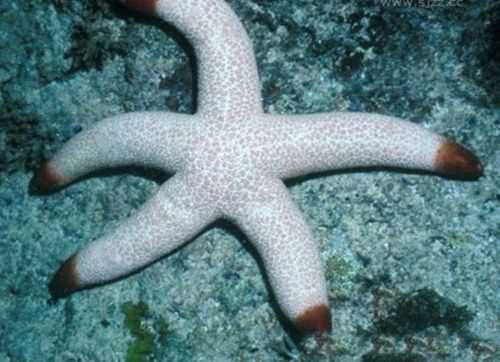 海星是无脊椎动物的一类,非鱼类。体扁,星形,具腕,现存1,800种,见于各海洋,太平洋北部的种类最多。辐径1?65公分,多数20?30公分。腕中空,有短棘和叉棘覆盖。下面的沟内有成行的管足(有的末端有吸盘),使海星能向任何方向爬行,甚至爬上陡峭的面。低等海星取食沿腕沟进入口的食物粒。高等种类的胃能翻至食饵上进行体外消化,或整个吞入。内骨骼由石灰骨板组成。通过皮肤进行呼吸。腕端有感光点。多数雌雄异体,少数雌雄同体;有的可以无性分裂生殖。