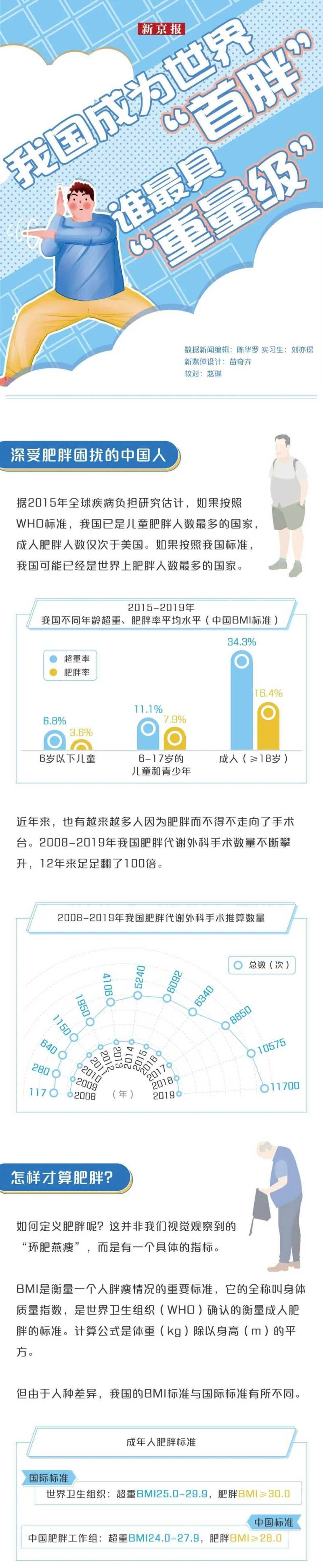 报告显示,根据我国BMI(体重指数)超重和肥胖分类标准,受试者市1580万成年人中,超重率为34.8%,肥胖率为14.1%。