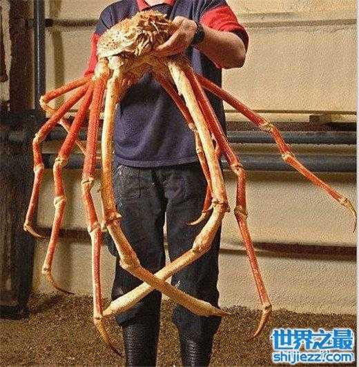 下面要说的世界上最重的螃蟹,它其实并不算是一个正经的螃蟹,他是属于蜘蛛蟹科分散在美国拉斯加,我之所以把它排出来,是因为在它的科属中算是体型非常大的一个,尤其是它的8条腿,曾有记载,蜘蛛蟹的腿长能够达到三米,这样一展开就有6米的长度,这放在任何一个成年人面前都都会让那个人感到震惊。