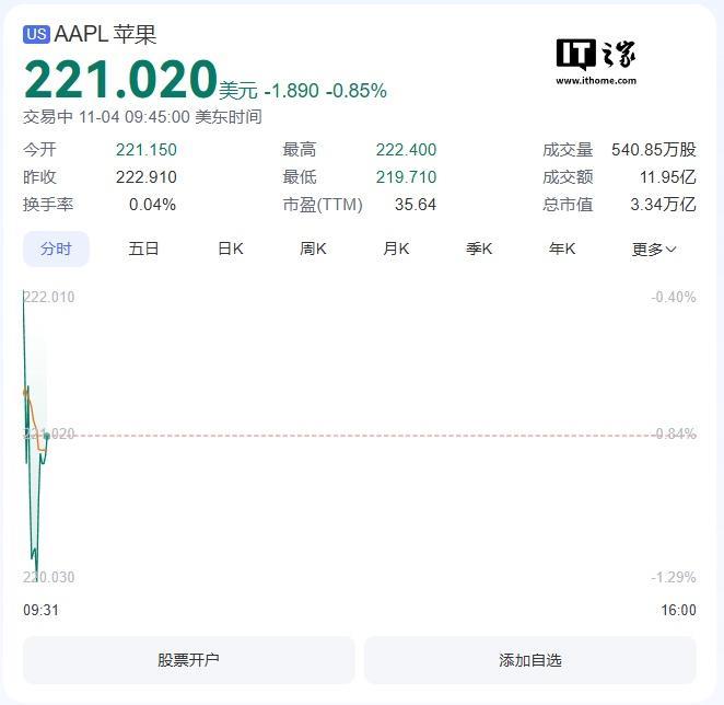 IT之家 11 月 4 日消息,截至IT之家发稿,英伟达股价涨 1.65%,总市值达 3.38 万亿美元,超越苹果公司,再次成为全球市值最高的公司。