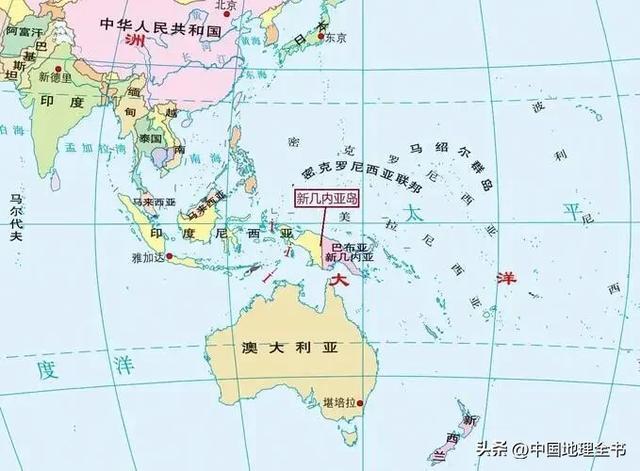 新几内亚岛又称巴布亚岛或伊里安岛,位于马来群岛东部、澳大利亚北部、太平洋西部、赤道南侧,是太平洋第一大岛屿、世界第二大岛屿,面积约78.5万平方千米。它是由澳大利亚板块和太平洋板块碰撞形成的大陆岛,属新生代构造区,地壳不稳定。全岛地形呈横向排列,由北而南分为北部山脉、北部山间低地、中央山脉、南部平原,最高点为查亚峰,海拔为4884米。该岛属热带季风气候,全年高温,降水丰富。