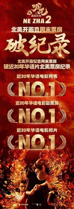 《哪吒之魔童闹海》北美当地时间2月14日正式上映,仅预售票房已超越《哪吒》第一部北美总票房。截至目前,2月14日开画规模达770间影院,破近20年来国产片华语发行商海外发行排片数量,美国上映地区覆盖当地48个州,上映城市超400个,加拿大上映地区覆盖当地10省、42个城市;在大洋洲地区澳大利亚、新西兰、斐济、巴布亚新几内亚四国上映以来,登顶近20年华语电影总票房冠军。