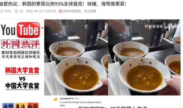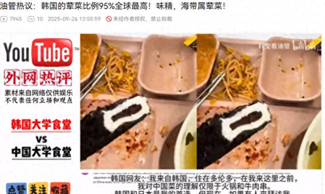 外网热议:韩国的荤菜比例95%全球最高!味精,海带属荤菜: