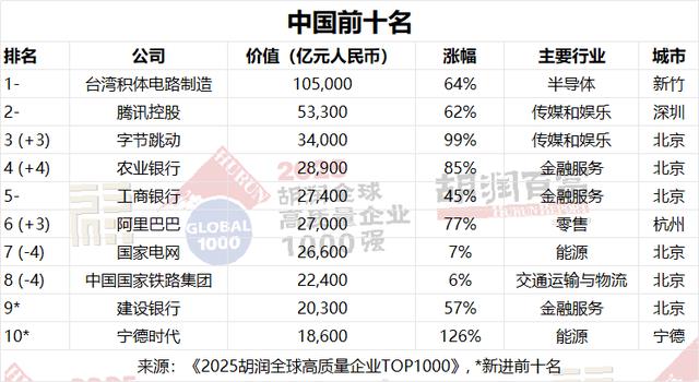 IT之家注意到,榜单显示中国价值最高的三家公司分别是台积电、腾讯、字节跳动。
