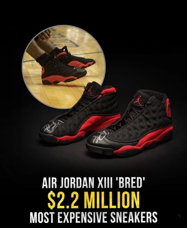 这双鞋不仅带有乔丹本人的亲笔签名,还直接关联到他职业生涯最后一个总冠军赛季及那记经典的“The Last Shot”。由于其无可复制的历史意义、乔丹本人的比赛实穿属性以及极高的收藏价值,这双鞋在2023年苏富比拍卖会上以220万美元成交,成为迄今为止拍卖价格最高的球鞋。