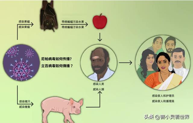 尼帕病毒早在1998年就在马来西亚第一次被发现,当时就搞出了大动静,一百多人死亡,一百万头猪被扑杀。这病毒是蝙蝠身上带的,属于人畜共患病毒,能从动物传人,也能人传人。