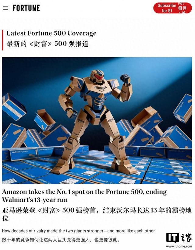 亚马逊成全球营收最高企业,终结沃尔玛13年《财富》500强霸榜