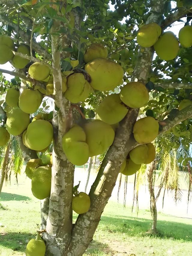 别的水果挂枝头,菠萝蜜倒好,直接长在树干上、树杈上,甚至树根上!