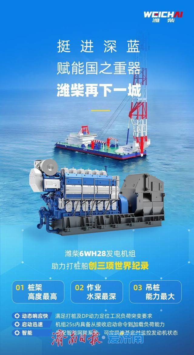 刷新三项世界纪录!全球最高打桩船搭载“潍柴心”