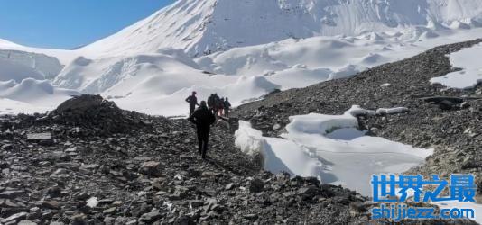 世界之巅珠穆朗玛峰下,连流石滩也常被积雪掩埋。