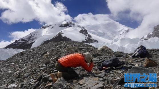 珠峰东绒布冰川6212米,在这里采集到的须弥扇叶芥的种子,刷新了我国目前植物种子采集的最高海拔纪录。