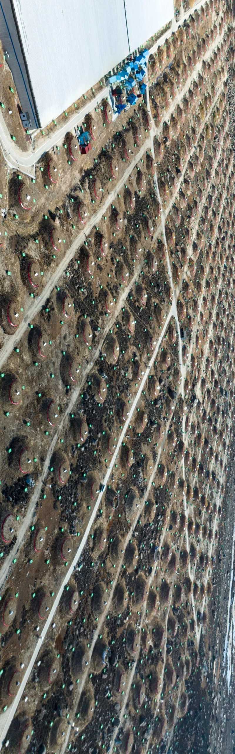 ↑ 图中央为水切伦科夫探测器的屋顶,周围的小土堆是缪子探测器阵列,每个大概36平方米,其中放置了装有超纯水的高反射率水袋。图片由四川天府观潮文化传媒有限公司提供,摄影:吴远扬(未经授权,请勿转载)