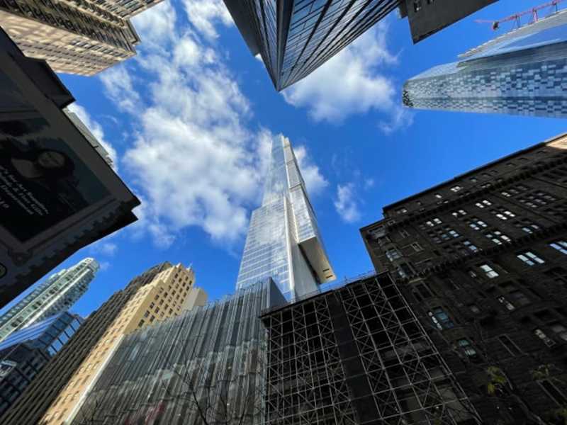 纽约中央公园塔的街景,这座472 米的超高摩天大楼由 AS+GG 设计,于 2020 年完工