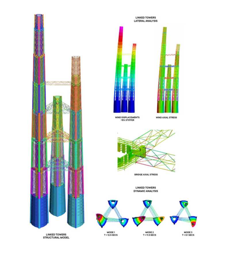 但《超高/巨高》还指出,吉达塔的结构系统建立在哈利法塔的基础上并对其进行了改进,采用三翼、Y形设计以实现最大的稳定性 -- 在 WZMH Architects设计的多伦多 CN 塔等早期建筑中可见一斑。史密斯还表示,哈利法塔和吉达塔的灵感来自尖锐的、全玻璃的Friedrichstrasse摩天大楼,这是美籍德裔建筑师密斯凡德罗1920 年代的未建成设计。