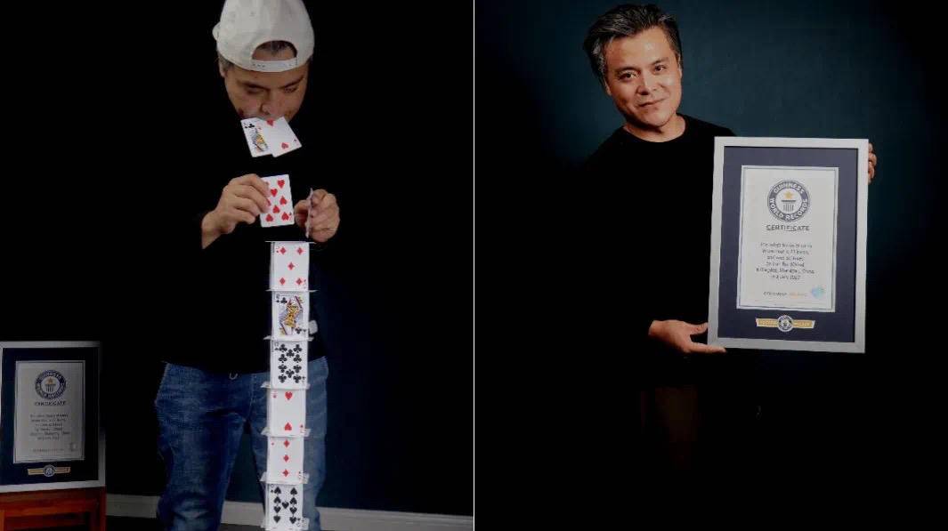 一小时内最多能将扑克牌叠到多少层?每层只用四张竖着的那种。今年8月,青岛小伙田瑞打破了老美保持的“1小时内搭建最高纸牌屋”的吉尼斯世界纪录,将成绩由26层刷新至27层。在接受扬子晚报记者的采访时,田瑞表示,自己从来不认为很有天赋,也不想通过打破纪录来证明自己异于常人,而是想告诉自己,努力坚持一切皆有可能。虽然只把记录从26层刷新到了27层,但也足足耗费了田瑞三年时光。
