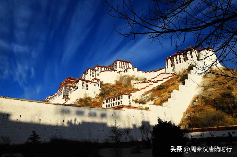 登高望远,斜阳染黄了群山,布达拉宫矗立在众多房屋中,显得如此高大,如此卓然不群。自唐代始建以来,布达拉宫已有1300多年的历史,世界上最高的宫殿的地位,至今无人超越。