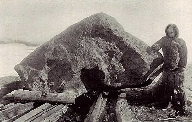 1897年美国探险家罗伯特·E·皮尔利与Ahnighito陨石合影