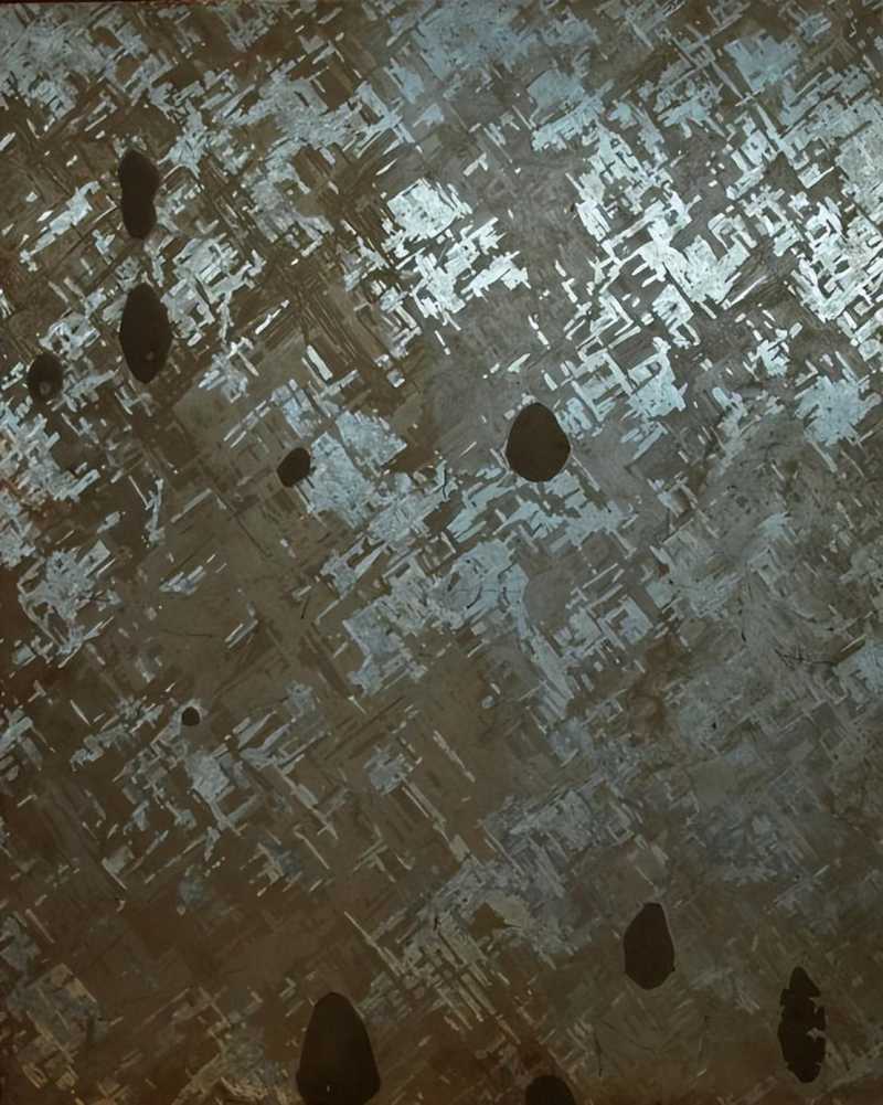 Campo del Cielo铁陨石是粗粒八面体结构,化学类型是ⅠAB,平均成分为6.67% Ni,0.43% Co,0.25% P,87 ppm Ga,407 ppm Ge和3.6 ppm Ir,其余92.6%为铁。