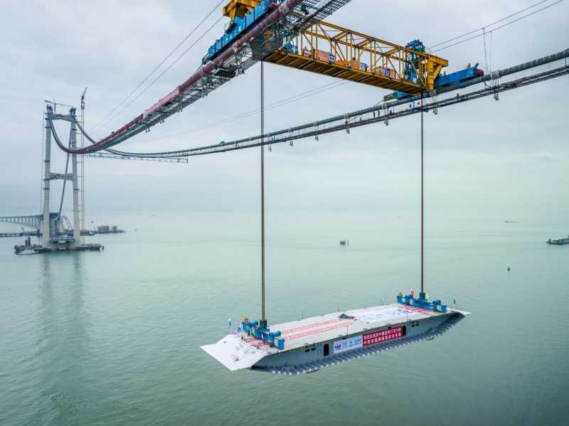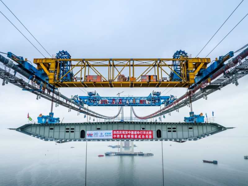 1月12日16时30分,由广东省交通集团建设,中交二航局参建的世界最高海中大桥——深中通道伶仃洋大桥首榀箱梁成功吊装,标志着大桥建设进入上部结构安装新阶段,大桥建设取得新进展。