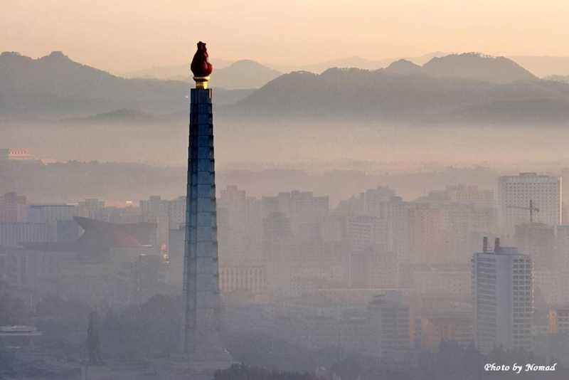 平壤的主体思想塔高耸入云,塔顶有一个高20米的火炬,火炬下有一直径8米、重46吨的托盘,主体思想塔和附近的广场以及建筑物共占地15万平方米。主题思想塔的火炬在夜间红光闪烁,在平壤全城各处都可以看见,非常雄伟壮观。
